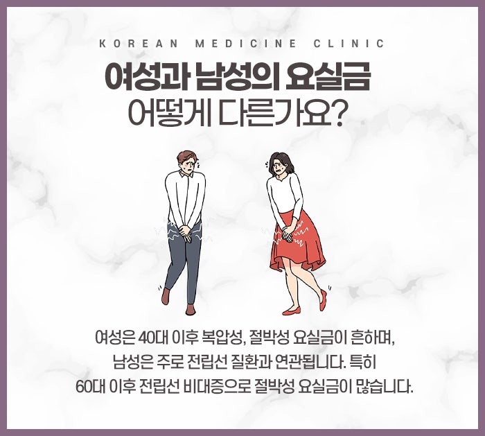 증상은 형태에 따라 여러 가지로 구분되는데, 크게 웃거나 재채기를 할 때, 혹은 줄넘기나 달리기처럼 배에 힘이 들어가는 상황에서 소변이 지려지는 복압성 요실금이 가장 흔합니다. 반면 갑작스럽게 소변이 마려운 느낌이 들면서 참지 못하고 화장실에 가기 전에 실수를 하게 되는 절박성 요실금도 많은 비중을 차지합니다. 화장실을 다녀온 지 얼마 되지 않았음에도 다시 가고 싶어지거나, 밤중에 잠을 자다가 소변 때문에 여러 번 깨는 증상도 포함됩니다. 어떤 분들은 방광에 소변이 가득 차서 넘쳐흐르는 일류성 증상을 겪기도 하는데, 이는 소변이 원활하게 배출되지 못해 발생하는 문제이기에 방서동 요실금치료가 필요합니다.